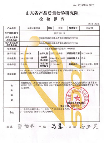 产品成分:32.5%高纯度专用尿素,67.5%三级超纯水。